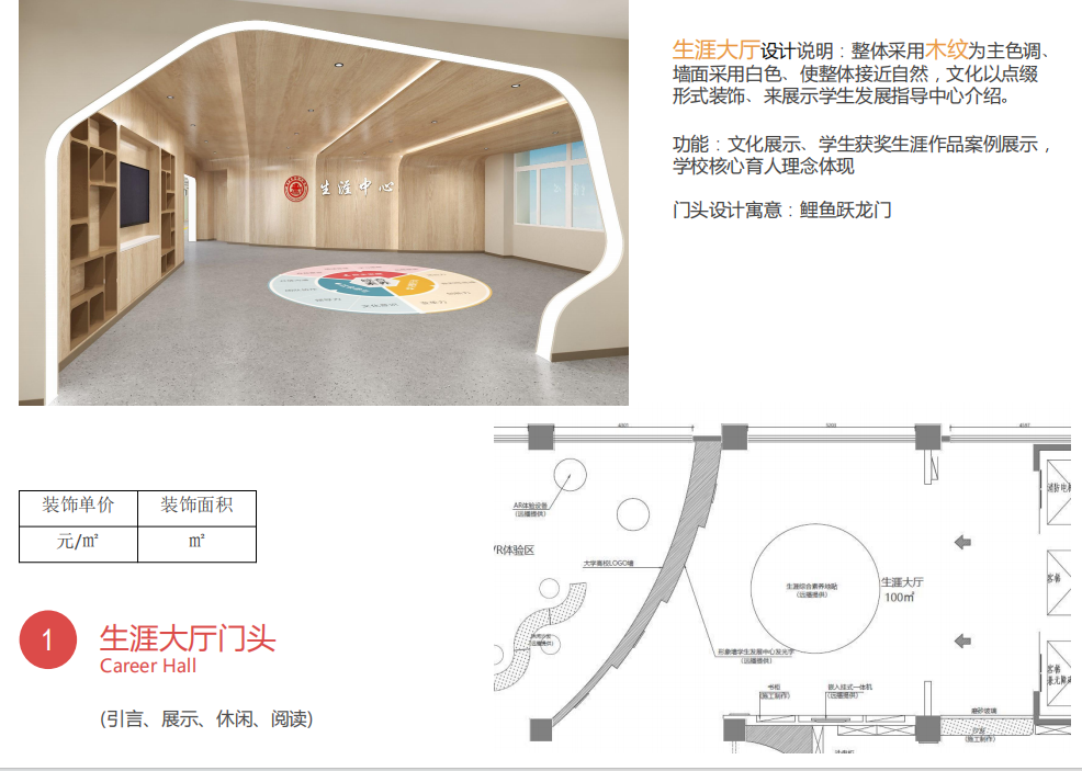 博高建材公司配套裝飾項目之交大附中生涯中心設(shè)計方案圓滿落地效果圖展示